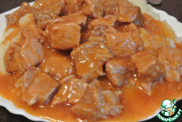 Замечательный вариант быстрого приготовления свинины с подливой. Вкусно.