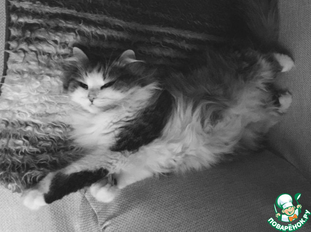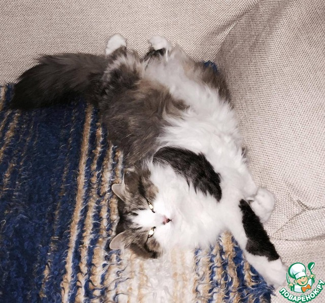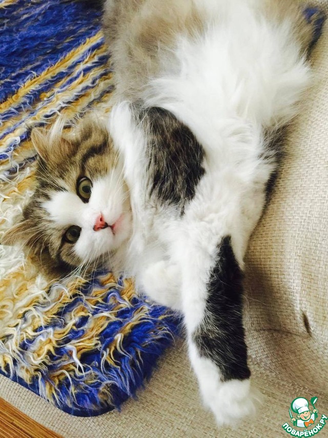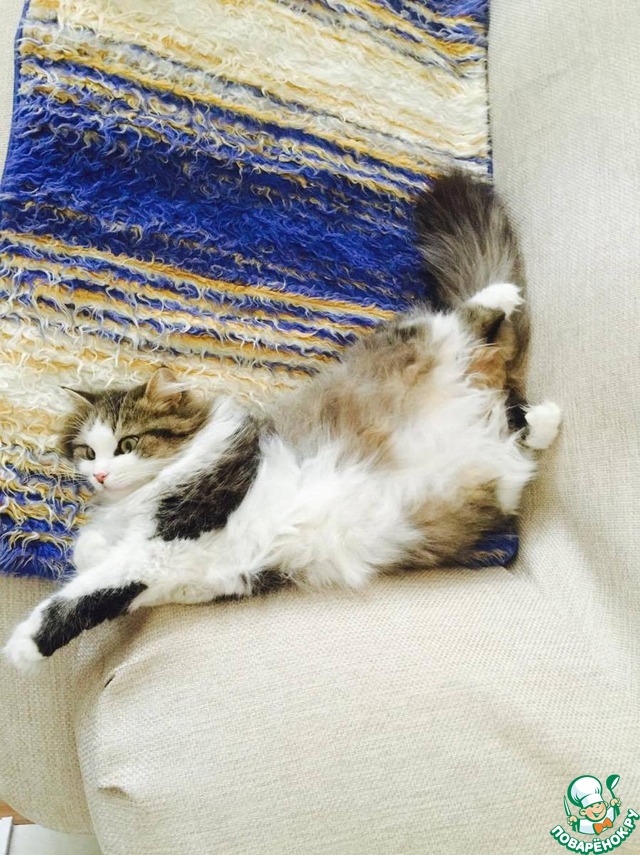 Вот так мы всегда лежим на диване, пузом кверху. Бережем котяток - оно и верно, ведь буквально уже со дня на день окотимся!...