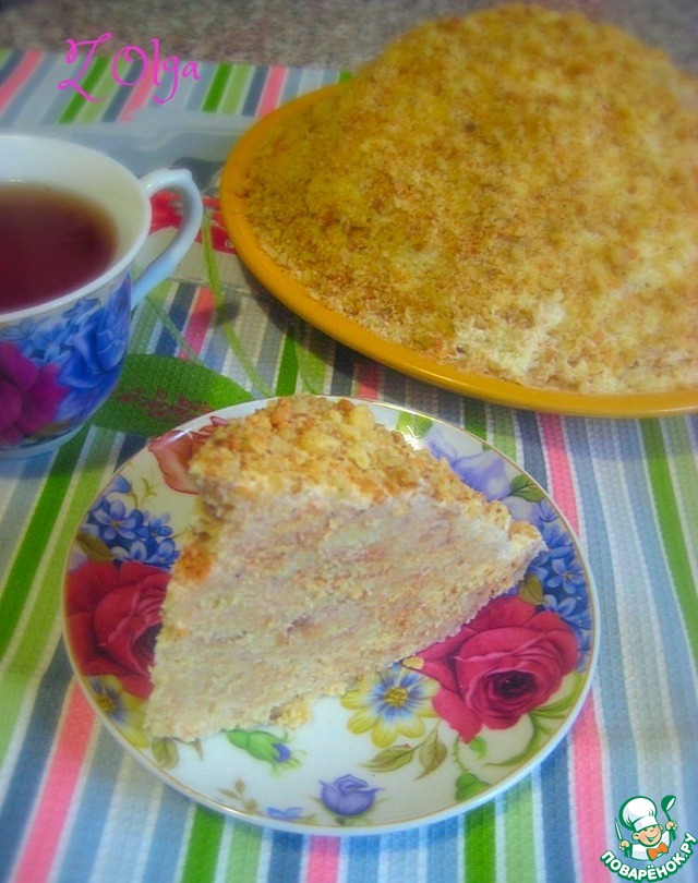 «Торт «Пломбир» https://www.povarenok.ru/recipes/show/101266/ по рецепту Татьяны fefeani! Торт понравился! Вкусный, большой, в меру сладкий! За крем - отдельное спасибо автору! Первый раз такой попробовала, буду использовать его теперь))). Украсила тортик крошкой - измельчила кусочки коржа и орешки!