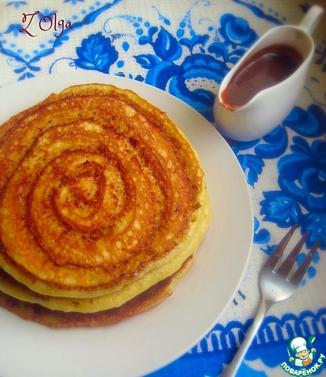 «Панкейки «Синнабон» по рецепту https://www.povarenok.ru/recipes/show/121893/ Оли Marioka82! Панкейки получились вкусными, интересными в приготовлении и очень эффектными! Единственное моё изменение - в соусе, вместо кофе добавила какао и отрегулировала его сладость под наши вкусы!
