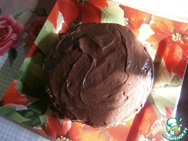 На все праздники обязательно пеку что-то шоколадное для дочки. Это торт очень понравился. Пекла на сыворотке. Корж разрезала и промазывала кремом из шоколада и 200 мл 15% сливок.