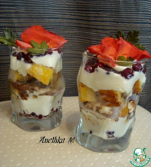 1. трайфл - десертик к 8 марта. Лимонные коржи, крем на основе сгущенного молока, многооо крема и клюква.