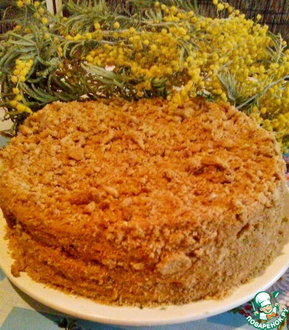 4. торт "Коровка"к 8 марта для мамы. Воздушные, медовые коржи, вкусный крем, напоминающий по вкусу конфетки Коровка - отсюда и название.