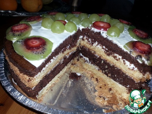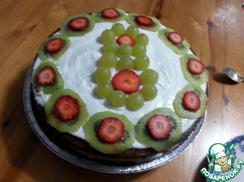 4.Тортик . Ну и ка же без сладкого ? Покопался мой муженек в каких то своих записях , попросил у меня приготовить форму, бумагу и выгнал гулять на время приготовления. Вообще все готовилось без моего присутствия и даже было запрещено заглядывать в холодильник до момента отмечания. Ну и конечно же , мне сладкоежке, тортик понравился. Спасибо любимому мужу за устроенный праздник!