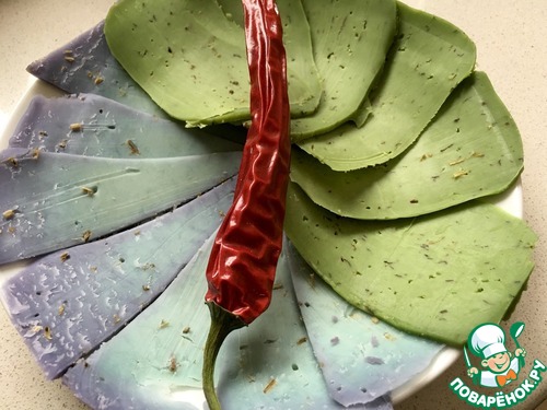 И зелёный-Гауда с песто. Сливочный с насыщенным вкусом песто. Невероятно радует и глаз и все вкусовые рецепторы