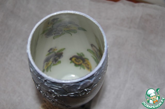Как умудрилась забыть сфотографировать вазу изнутри, объяснить Вам не могу,покажу как это выглядит на идентичной вазе которую в следующий раз обязательно покажу Вам,сегодня не могу,так как отфоткала ее только изнутри,видно с головой что-то не так было))