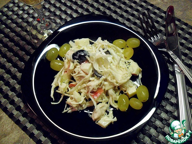 От салата я в восторге. Привнесла маленькие изменения: куриную грудку нарезала сырую и обжаривала с травами. А еще добавила яблоко. Не могла оторваться от салат! Буду готовить еще! Спасибо ЛеркаВалерка.