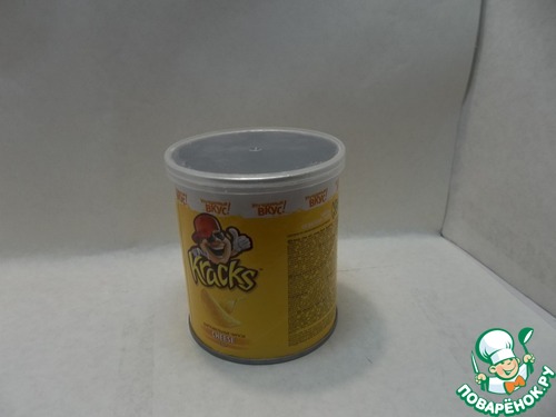 А вот из этой баночки,из под чипсов,я сделала коробочку для хранения ватных дисков.