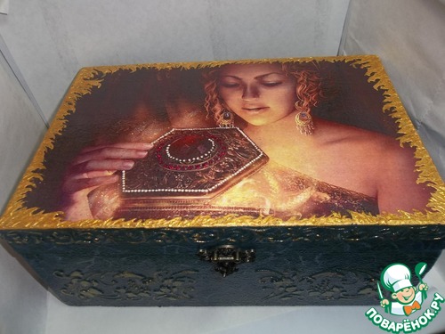 И ещё, хочу показать шкатулку, какую мне прислала Ириша НАНЯ 02 и какая она получилась. Коробочка из под чипсов стала........