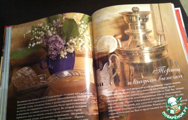Это книга с вкусными рецептами из времен СССР, с красочными фото наивкуснейших блюд и описанием их приготовления и историями из того времени. Хочу показать вам несколько страничек из этой замечательной книги.