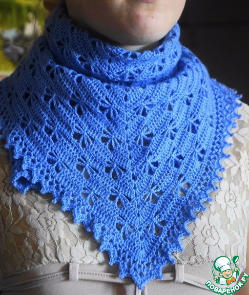 Была связана еще одна шаль в том же цвете и тем же рисунком, но с другой обвязкой