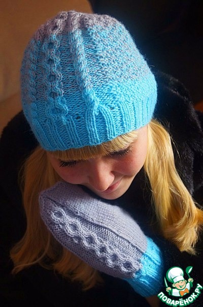 Комплект шапочка и варежки крючком. К этому комплекту были связаны еще 2 шапочки для деток близнецов, в том же цвете и тем же рисунком, фото к сожалению нет.