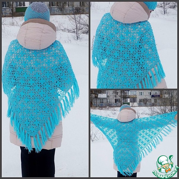 Была связана еще одна шаль в том же цвете и тем же рисунком, но с другой обвязкой