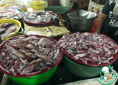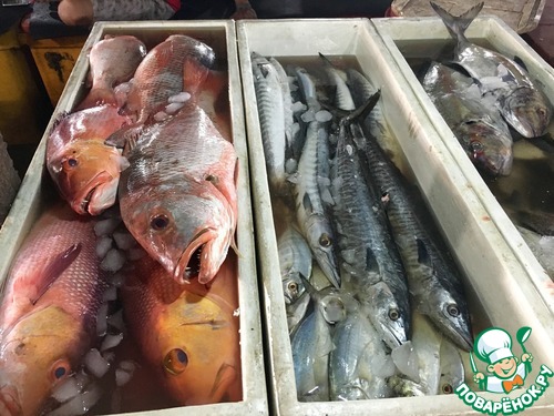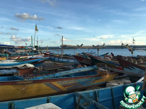 Берег океана... Шум волн . Все заставлено столиками. Множество ресторанчиков готовят тут рыбу и море продукты прямо с рынка по соседству.