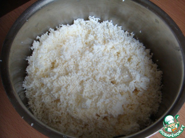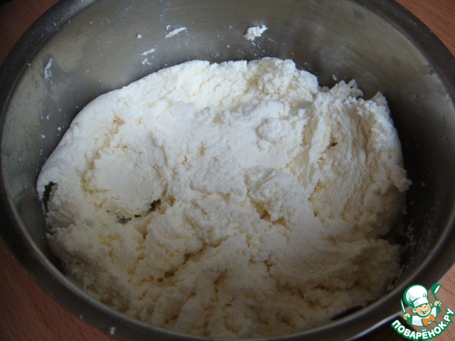 Творог (у меня домашний, покупала на рынке у проверенного человечка) перетереть через сито. Я перетирала в ту емкость, в которой в последствии варила.