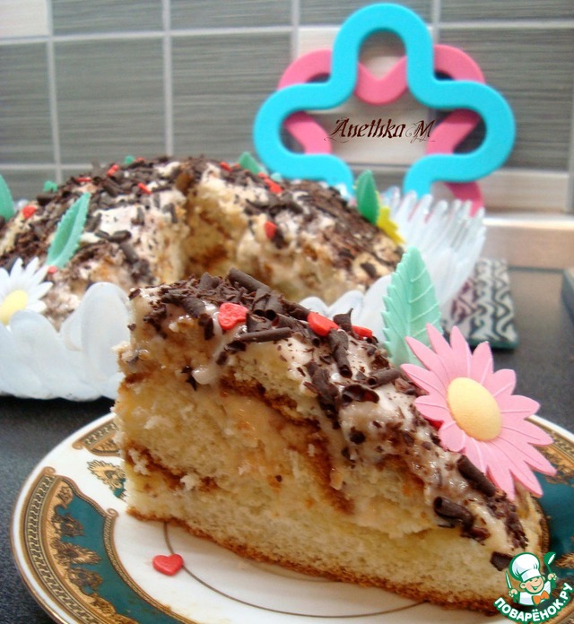 Торт "Кудрявый парень" https://www.povarenok.ru/recipes/show/8049/ с небольшими поправками от меня. Не добавляла какао, глазурь сделала с марципаном и шоколад для украшения пошел. Форму взяла только широкую и торт пошел расти вширь, а в не в рост ))) Но на вкусе это не отразилось