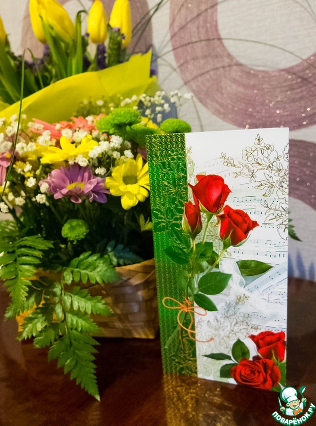 [cut] Моя дорогая девочка, с которой я встречалась в реальной жизни и познакомилась с ней и её замечательной семьей, прислала мне с курьером открыточку и невероятно красивый букет цветов!!