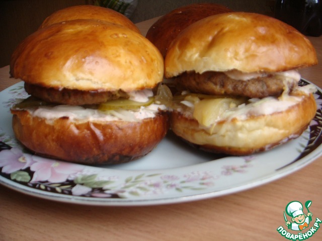 Сегодня выходной и утром мы ели бургеры. А булочки я пекла по замечательному рецепту Кот-нок ГАВ https://www.povarenok.ru/recipes/show/97524/