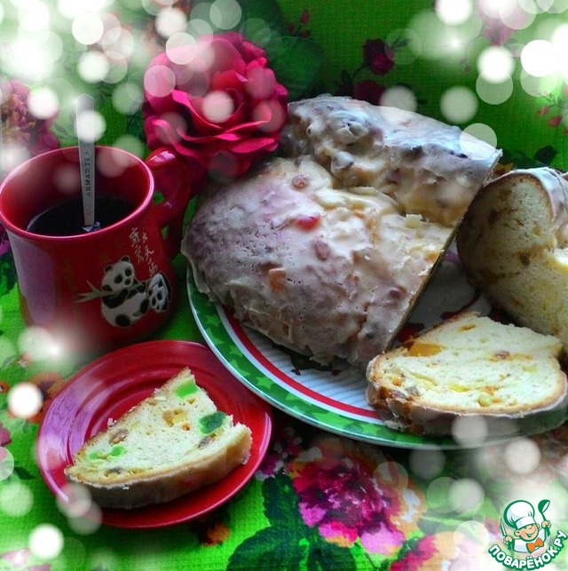 На праздничном столе 8 Марта у нас была эта булка "Праздничная"! Как же это вкусно! Делала все по рецепту: и цукаты и миндаль и изюм! Глазурь - супер вкусная! Только по сложившимся обстоятельствам тесто у меня после вмешивания начинки подходило в холодильнике часов 9! Но все чудесно подошло и пропеклось(за 50 минут). Я вот даже думаю, что и Пасхальный кулич можно испечь из этого теста! По вкусу - ооочень подходящее!