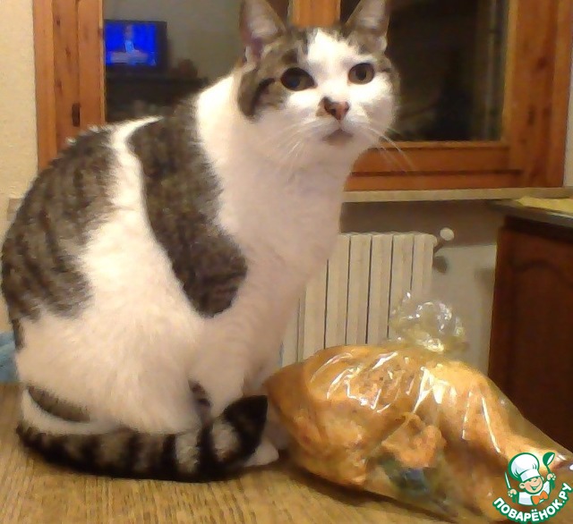 Красавчик котейка! Брови у него - это что-то! А взгляд возле курицы... Вселенская скорбь! Только кошки так умеют изображать голодный обморок
