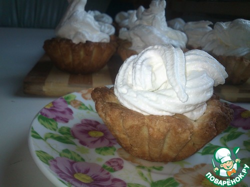 вот такие корзиночки с кремом Мокрое безе. крем отличный. вкусный,хорошо держит форму. только он у меня грелся немного меньше времени, чем по рецепту. может, стоило еще подержать, но меня результат уже на 8 минуте удовлетворил. вкусно! жалко мало...