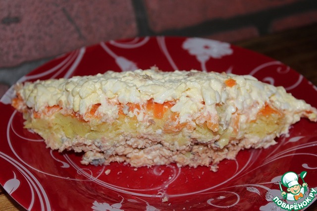 Очень вкусный салатик! К сожалению лука не оказалось , семейство не стало дожидаться его покупки и слопали салатик за один присест . Ранее делала со шпротами, но этот вариант понравился больше!