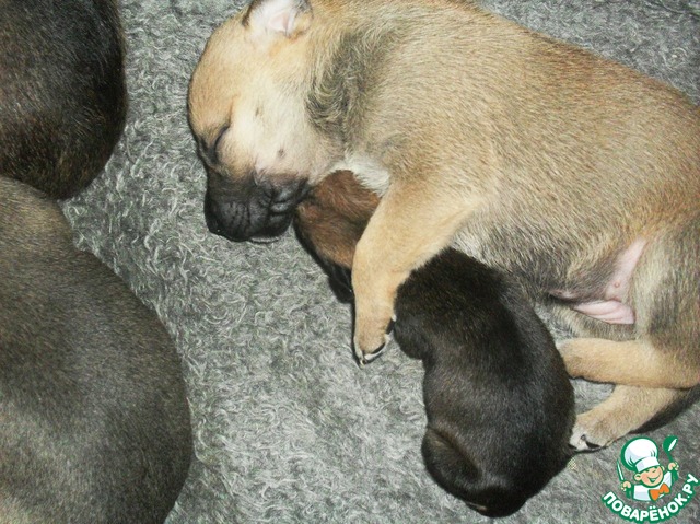 Старшие барбосики обижают маленьких,грызут их за уши.Но тем не менее согреть меньшего не упускают возможности.