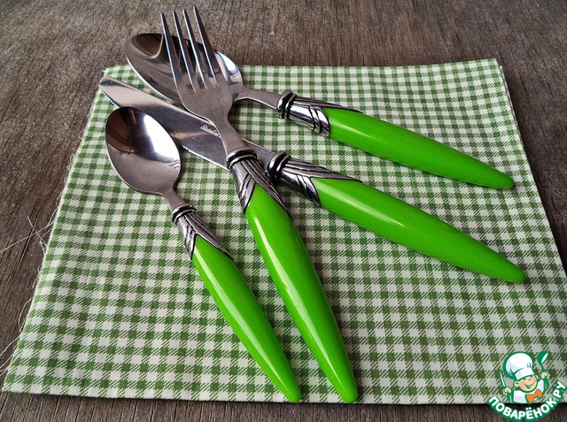 А ещё Светик мне прислала стильные, красивые приборы! И славную салфеточку в клетку)))