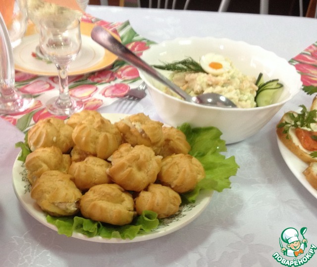 и профитроли, традиционно начиненные" Салатом из печени трески"