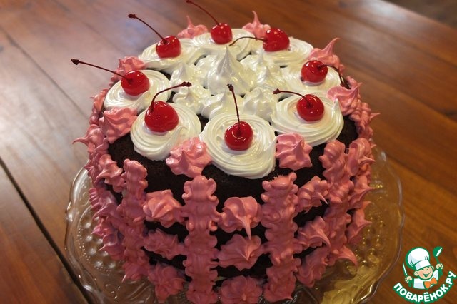 Готовила другу на день рождения торт "Черный лес". За основу взяла Шоколадный бисквит на кипятке в мультиварке, прослаивала взбитыми сливками и вишней, а украшала Крем "Мокрое безе". Торт получился вкусным и был съеден быстро и с удовольствием!