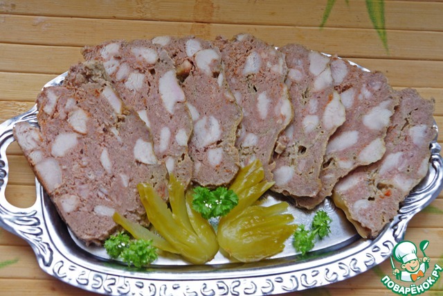 У меня не совсем куриная, фарш был утиный, вместо бедра - филе индейки, остальное все по рецепту, получился темненький, но очень вкусно.
