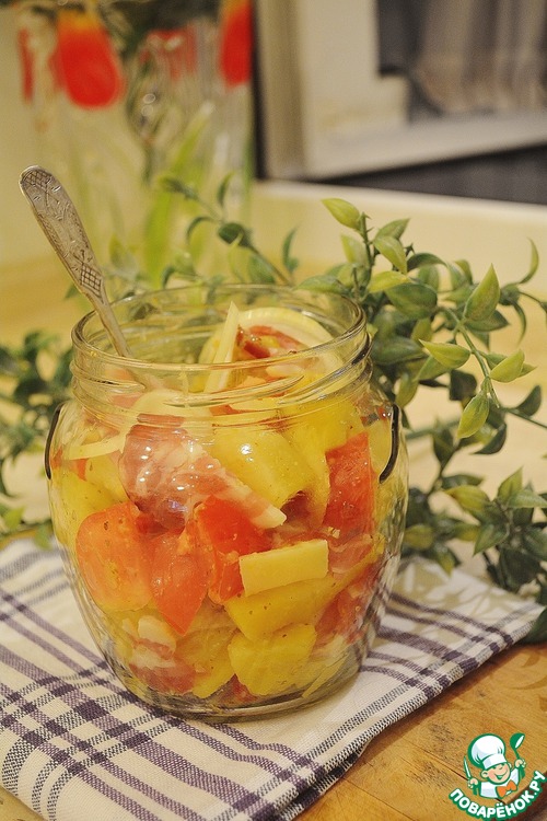 Салат "Проще простого"(https://www.povarenok.ru/recipes/show/96683/)- Жене удалось меня удивить! Никогда такого сояетания не пробовали, оно оказалось - удачным!