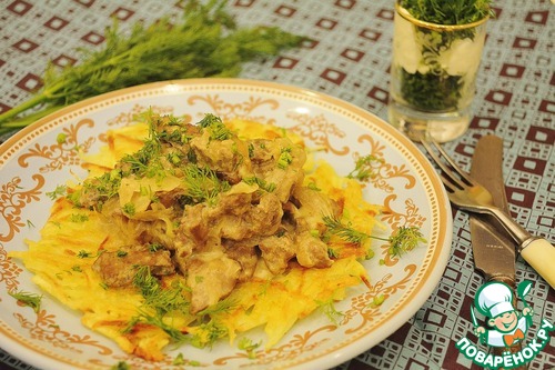 Печень с грибами на картофельной тарелке (https://www.povarenok.ru/recipes/show/100232/) - Наташа очень порадовала рецептом - здесь все, что душе угодно - и печеночка, такая нежная и сочная! Картофельная тарелочка с хрустящими краями и пропитанная соусом в центре - сытно, вкусно, а больше ничего и не надо!