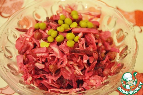 Салат из свеклы, капусты и говядины (https://www.povarenok.ru/recipes/show/86287/) отличное сочетание, думаю, что здесь пойдет любое мясо.... у меня же отлично пошла колбаса....