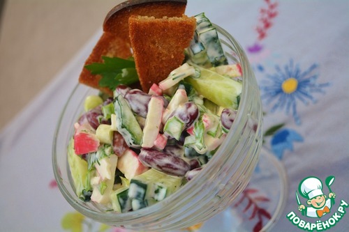 Салат с фасолью и сухариками(https://www.povarenok.ru/recipes/show/101873/) - вкусный и быстрый салатик.