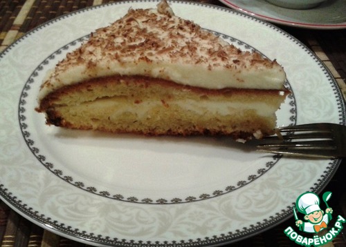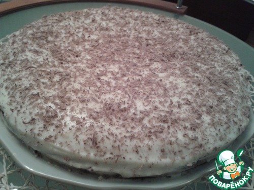 Великолепный тортик! Я выпекала в духовке, в разъемной форме. Поэтому получился невысокий, разрезала на два коржа. Сверху натерла шоколад!