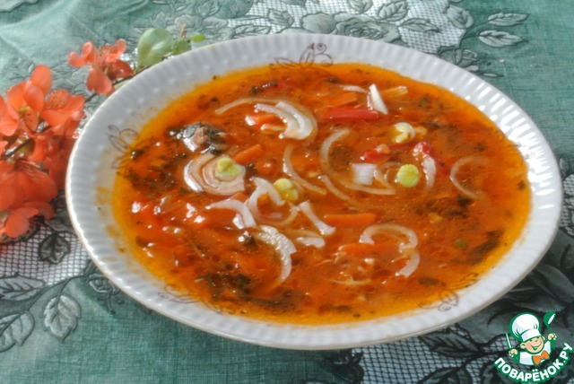 Люблю ароматные томатные супы. Использовала лишь красный болгарский перец, который придал блюду насыщенный сладковатый привкус.