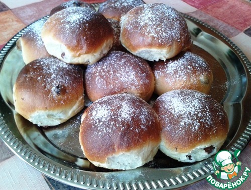 Очень и очень вкусные булочки! Тесто замесила в ХП. Пекла не на пасху, поэтому сверху посыпала сахарной пудрой. Великолепные, мягкие, пушистые булочки!