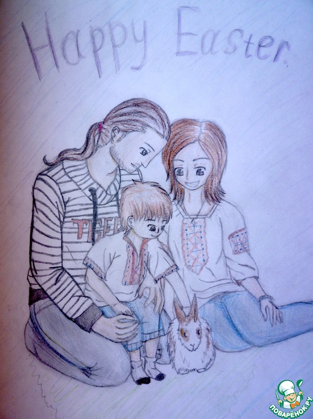 Хочу поделиться с вами своей радостью! Мои ученики в этом году получили от меня небольшие шоколадные подарочки к Пасхе. В ответ одна милая девчушка решила тоже мне что-то подарить. Вот она, чудесная открытка! На ней моя семья