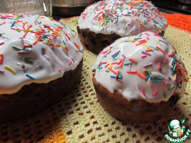 Брала пятую часть от предложенной нормы. Тесто очень вкусное, все получилось, как в описании. Сначала использовала миксер (насадки крючки) при смешивании опары с мукой, потом руками. Все очень легко и просто. Пекла в формах с тефлоновым покрытием, но маловато положила теста, получились невысокие, чуть выше самих форм. А от глазури я просто в восторге. Так густо можно выкладывать, она не стекает и держит форму. Вкуснотища!!!