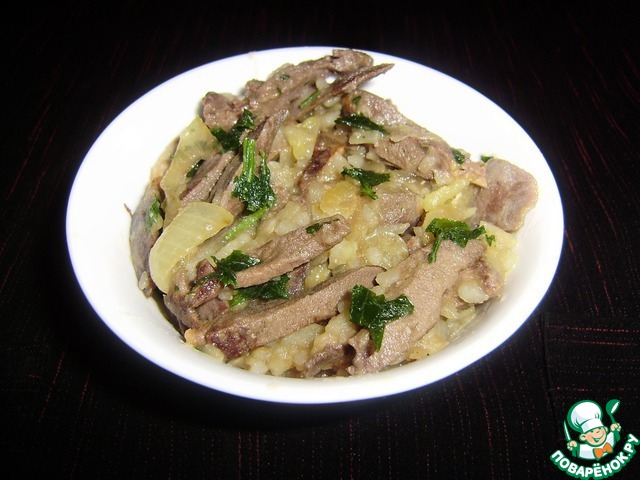 Вкусный и интересный салатик. Сердца у меня были индюшиные.