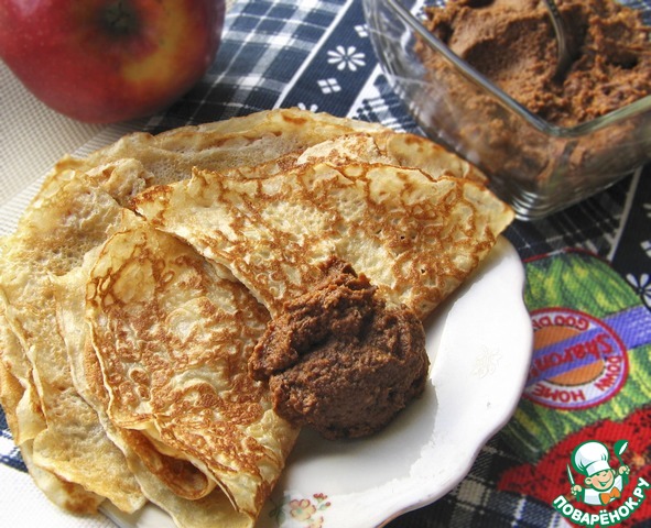 Овсяные блины с шоколадно-яблочной пастой по рецепту ПантерРрочка https://www.povarenok.ru/recipes/show/122064/ - все очень вкусно - и блины, и начинка! И пасты довольно много получилось, два дня ели эти чудесные блинчики!