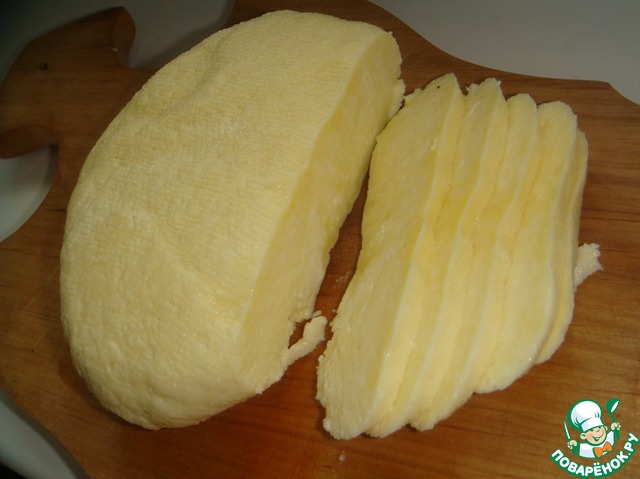 Обалденно вкусный, нежный сыр! Только мой желтенький получился (из домашнего молока). Делала половину порции, уксус заменила лимонным соком, все остальное строго по рецепту. Вес готового сыра 260 г, после вымачивания в рассоле стал 270. Обязательно буду повторять и не раз!