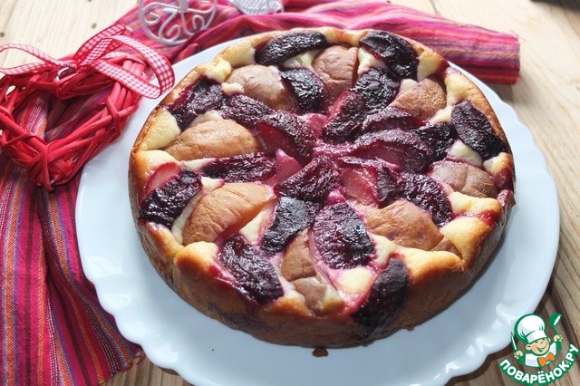 Творожный пирог с яблоками и сливами Нежное тесто и много вкусной начинки! Пирог классный!