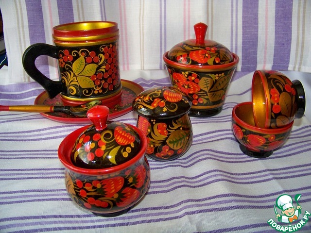 Обожаю хохлому! И опять Машенька угадала мою любовь к изделиям с хохломской росписью.Тому доказательство фото, на втором плане которого кружка с блюдцем и ложкой ,их я когда-то привезла с собой, как память о моей стране.