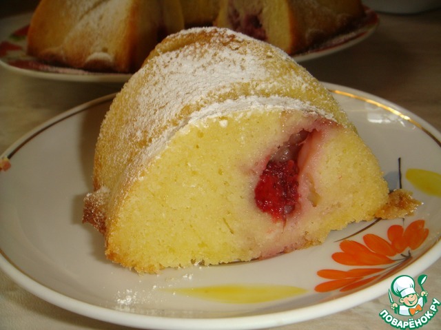 Получился вкусный и красивый пирог, у меня с клубникой. Единственное мое отхождение от оригинала - пекла в кексовой форме.