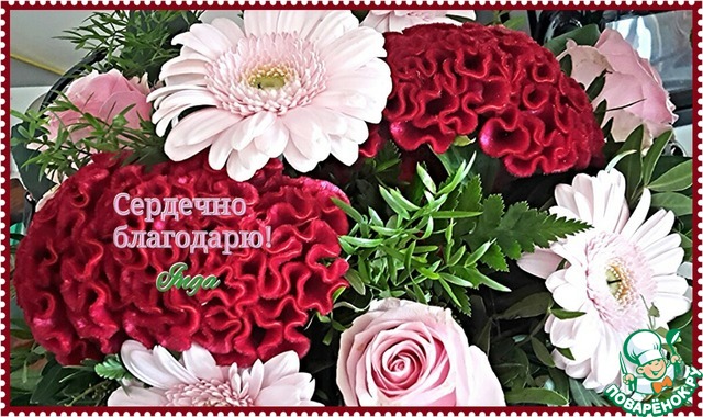 Потому хочу от всей души поблагодарить всех пчелок, так щедро несущих мне свои плюсики. Спасибо вам, дорогие поварята, за внимание, неослабевающую поддержку и дружбу! Особое спасибо Оле (Жужа-48) и Люде (Сурик), они с такой оперативностью откликнулись на рецепт моих блинчиков и уже успели украсить его своими замечательными фотографиями.