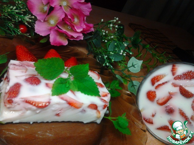 Прекрасный лёгкий десерт.как раз для лета!!!! И ещё немного Вашего внимания!Вот такая земляника выросла у меня на клумбе.очень ароматная красотуля!!!
