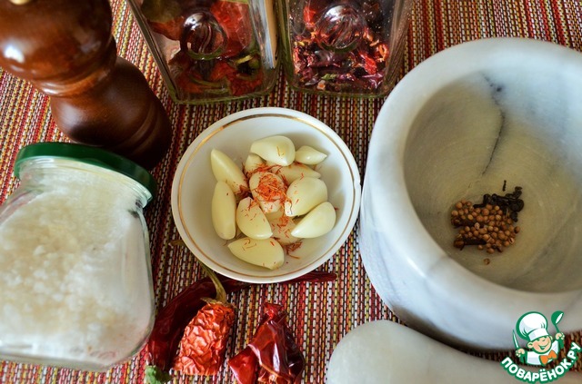 я взяла 1/4 от закладки, т.к. думаю приготовить еще и сванскую соль.