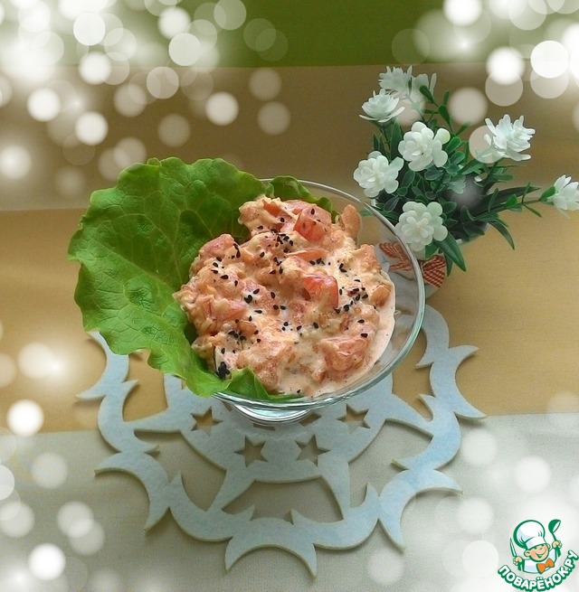 Очень понравился салат! Просто до безобразия, но так вкусно! С летними помидорками - вообще будет "улёт"! Посыпала моим любимым калинджи.